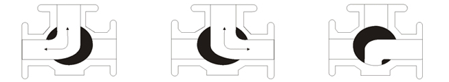 三通球阀可分为L形和T形,L形(Q44F/Q44H)三通球阀用于介质流向的切换,能使相互垂直的两个通道连接;T形(Q45F/Q45H)三通球阀用于介质分流、合流及流向切换。T形三通可以使三个通道相互连通或使其中的两个通道连通。