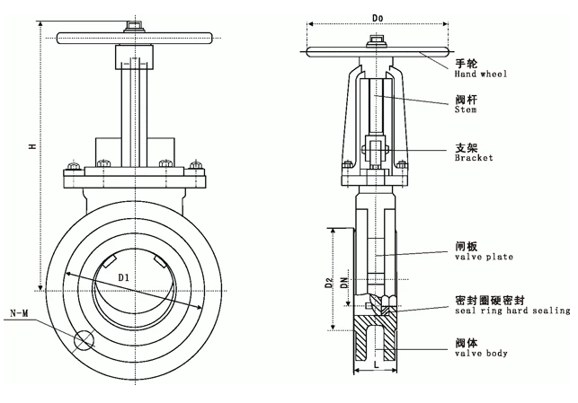 | 公称压力(MPa) | 公称通径(mm) | L | D | D1 | D2 | H | N-M | D0 |