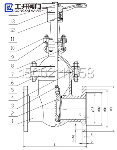 阀门上设有“开”“关”指示机构,顺时针方向旋转,闸板下降,指针指向“关”位置,阀门关闭。逆时针方向旋转,闸板上升,指针指向“开”位置,阀门开启。