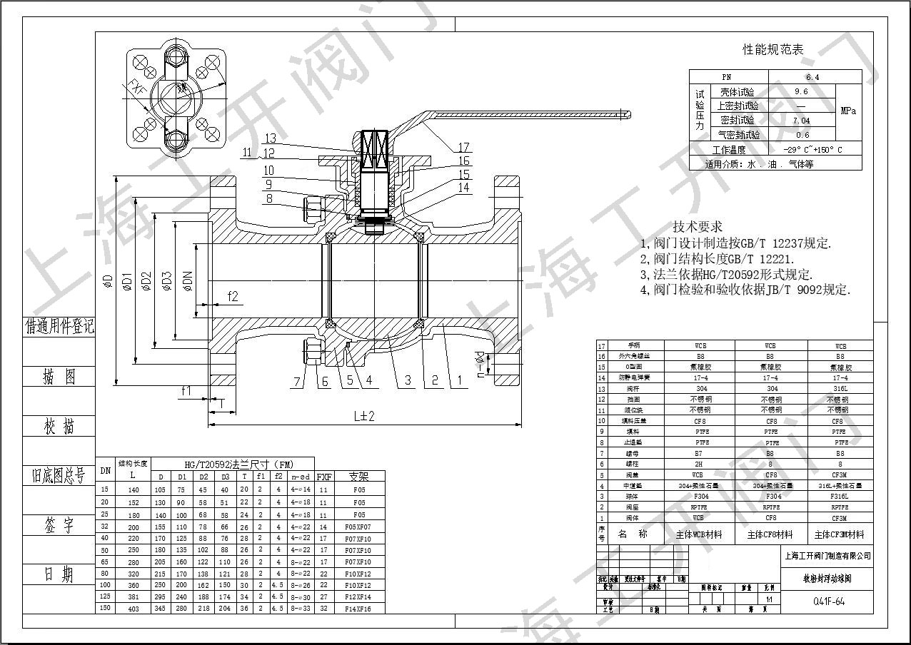 手动球阀Q41F-64化工部标准-碳钢不锈钢材质图纸