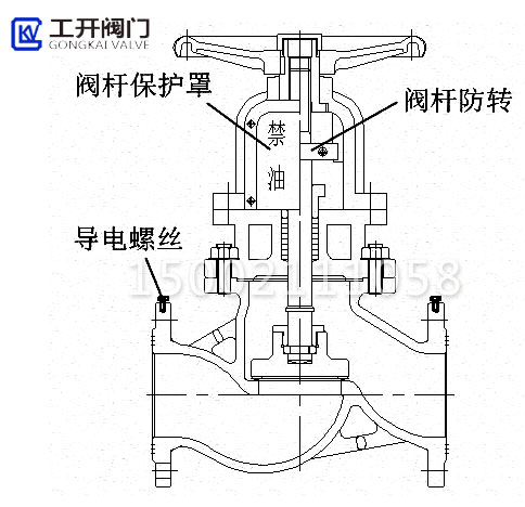 3、阀杆保护装置。外漏阀杆部分有保护罩,防止灰尘和油污。有“禁油”标志。