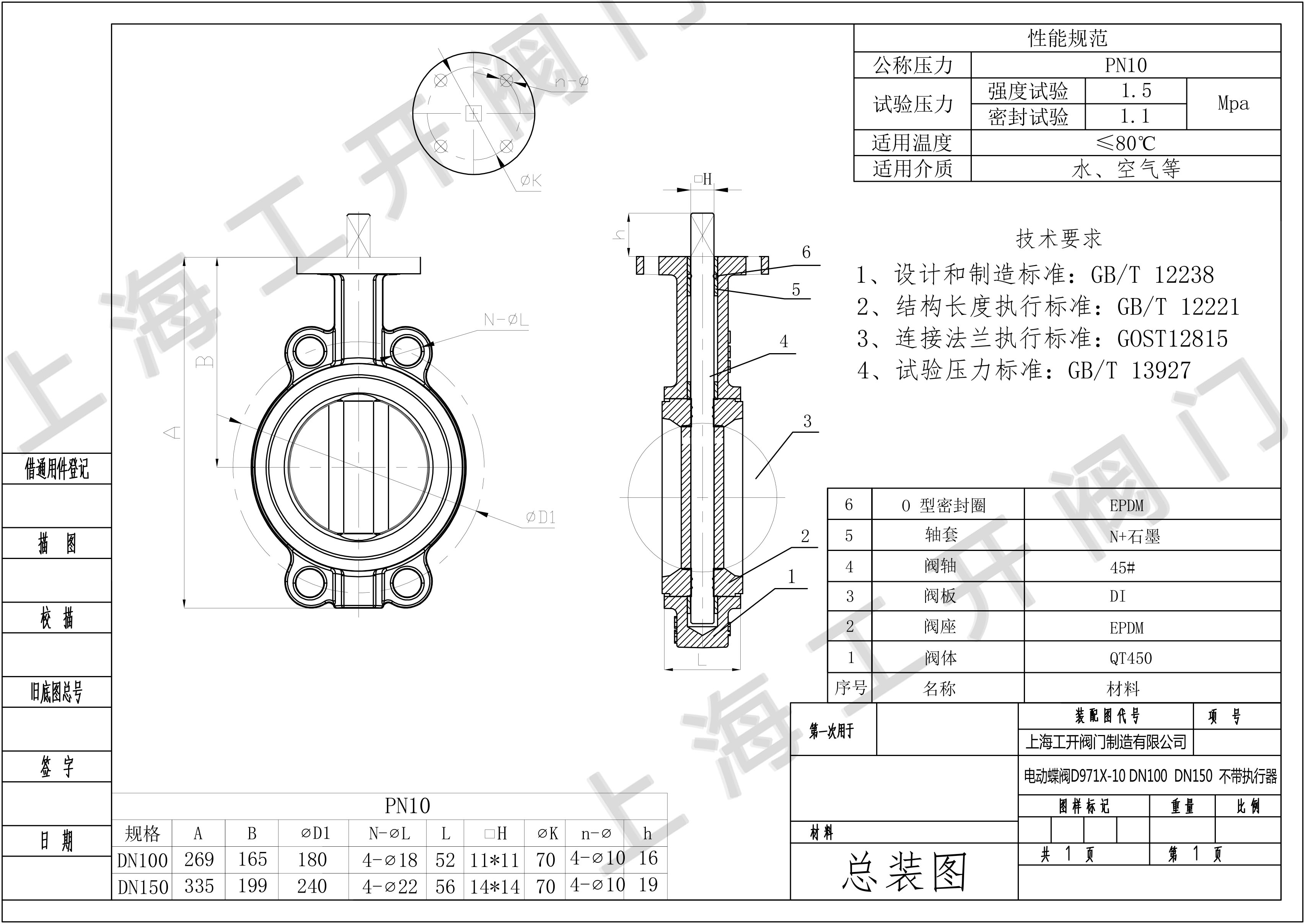 蝶阀D71X-DN100-DN150图纸-电动蝶阀无头