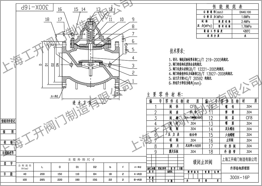 300X-16P不锈钢缓闭式止回阀图纸