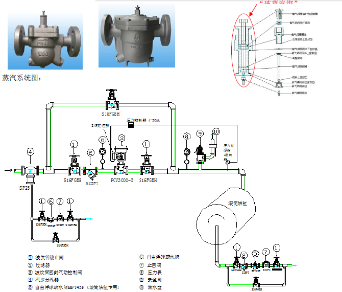 工作原理:冷凝水来的时候,疏水阀正常排放,一旦产生蒸汽绑,即突然夹带来了一股蒸汽时,通过下右图中的“破蒸汽绑”针阀装置排出,后续的冷凝水也就可以连续顺畅的排放了。