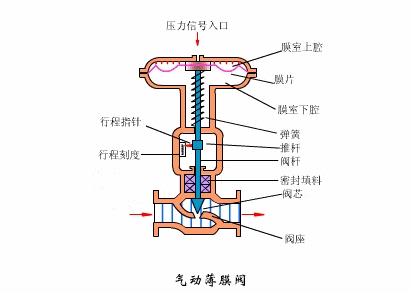 气开型(常闭型)是当膜头上空气压力增加时,阀门向增加开度方向动作,当达到输入气压上限时,阀门处于全开状态。反过来,当空气压力减小时,阀门向关闭方向动作,在没有输入空气时,阀门全闭。顾通常我们称气开型调节阀为故障关闭型阀门。