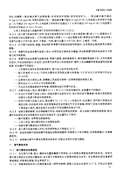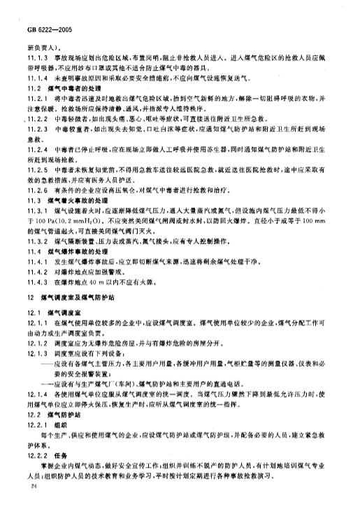 GB6222-2005《工业企业煤气安全规程》