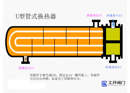 2、热交换过程:当热介质流经U型管道时,它会将热量传递给管壁,管壁再将热量传递给冷介质,使其升温。同时,冷介质的热量也会传递给热介质,使其降温。这样,冷介质和热介质在U型管内实现了热量的交换。