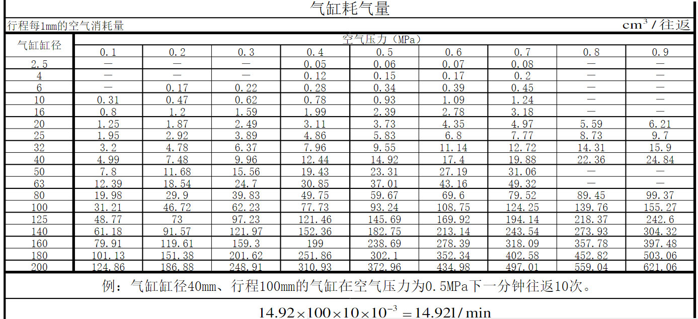 耗气量: 气缸往复一个行程的情况下,气缸以及缸与换向阀之间的配管内所消耗的空气量(标准大气压状态下)