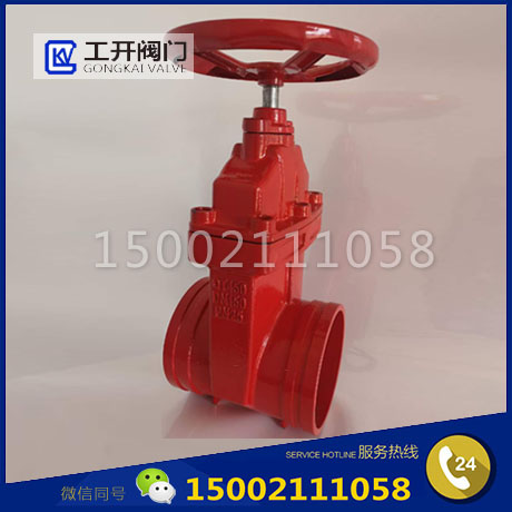 沟槽暗杆闸阀的启闭件是闸板,闸板的运动方向与流体方向相垂直,闸阀只能作全开和全关,不能作调节和节流。闸板有两个密封面,常用的模式闸板阀的两个密封面形成楔形、楔形角随阀门参数而异,通常为 50, 介质温度不高时为 2°52'''' 。楔式闸阀的闸板可以做成一个整体,叫做刚性闸板;也可以做成能产生微量变形的闸板,以其工艺性,弥补密封面角度在加工过程中产生的偏差,这种闸板叫做弹性闸板,一般为法兰连接。