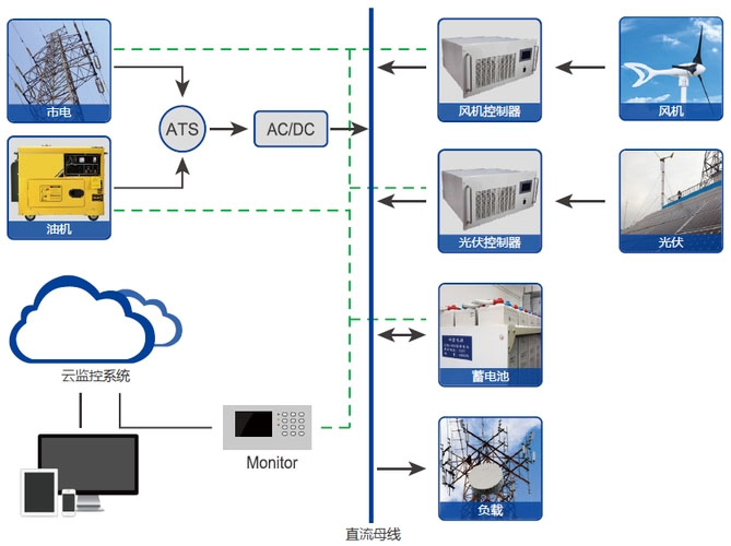 风光互补发电系统是针对通信基站、微波站、边防哨所、边远牧区、无电户地区及海岛,在远离大电网,处于无电状态、人烟稀少,用电负荷低且交通不便的情况下,利用本地区充裕的风能、太阳能建设的一种经济实用性发电站。