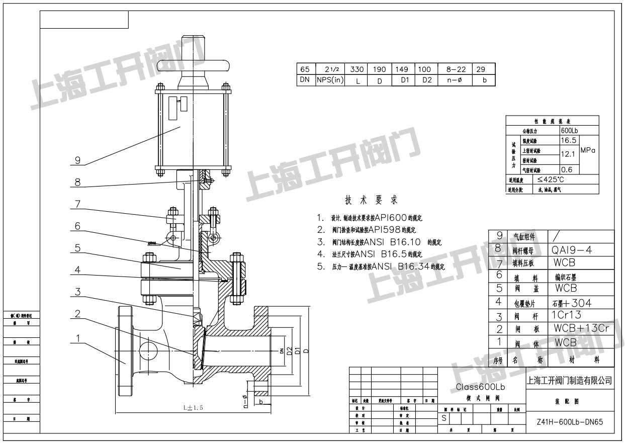 美标闸阀Z41H-600LB-DN65-美标闸阀图纸